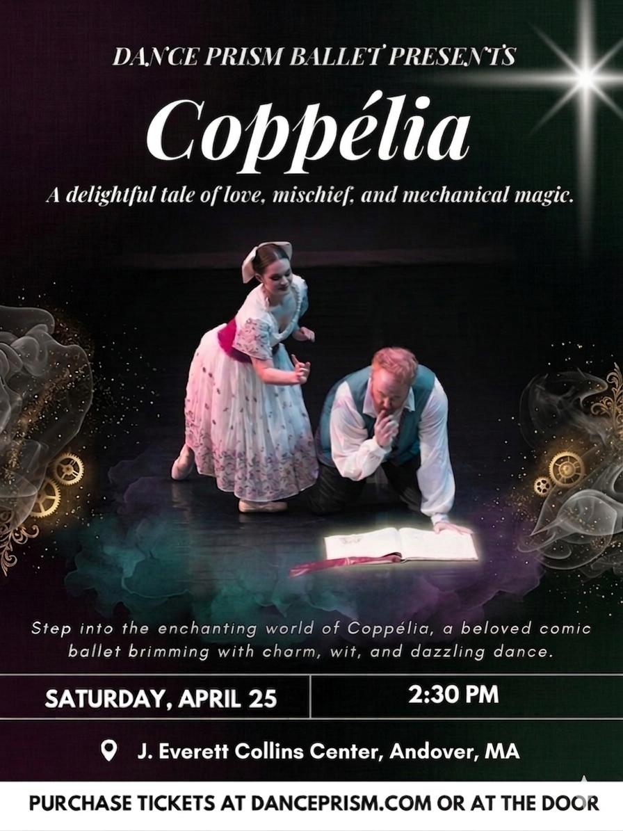 Join the local dancers of Dance Prism Ballet for an afternoon of comedy, mischief, and beautiful dance at the J. Everett Collins Center. Coppélia is a lighthearted, family-friendly comic ballet—the perfect way to introduce children to the theater. Follow the story of Swanilda as she tries to discover the secret of the mysterious "mechanical doll" in Dr. Coppélius’s workshop. This performance is a wonderful opportunity to support a local regional arts organization and inspire your young dancer.